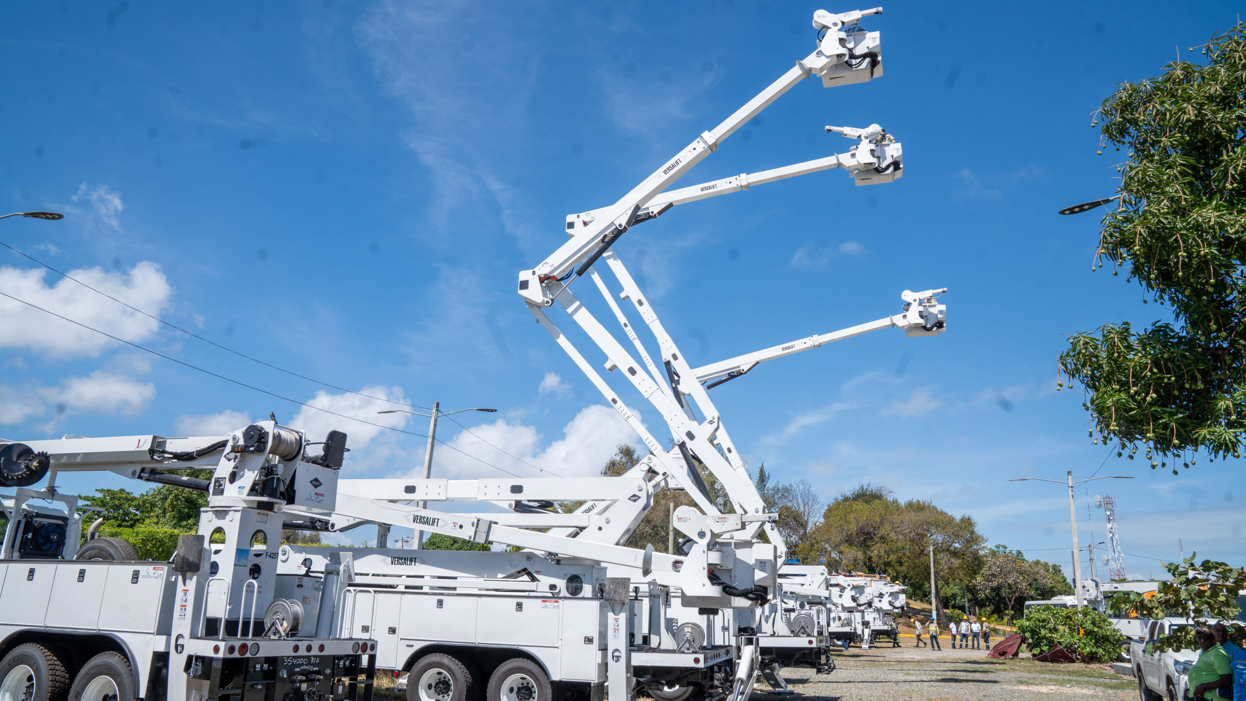Robles también resaltó que esta es la tercera entrega de camiones especializados que realiza la gestión del presidente Luis Abinader, sumando camiones canasto con longitudes de hasta 120 pies para operar en condiciones exigentes, como las líneas de 138 y 345 kV.